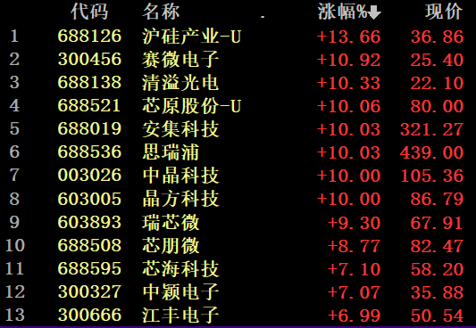 今日部分涨幅居前芯片股