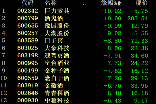 从板块看,白酒概念今日调整最为明显,巨力索具、酒鬼酒、豫园股份跌停。