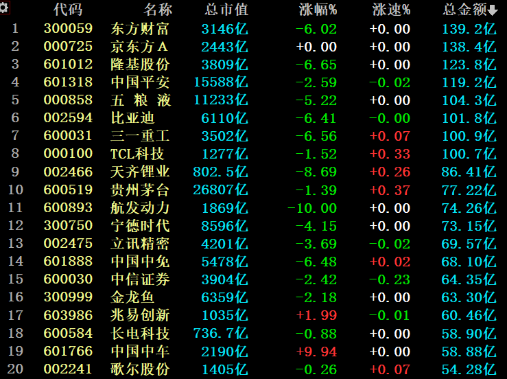 另一方面,今日两市成交额前20个股中,仅有兆易创新、中国中车上涨。
