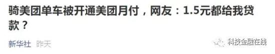 对此,新华社公众号1月11日刊出《骑美团单车被开通美团月付,网友:1.5元都给我贷款?》,直指“美团月付”在用户不知情的情况下开通办理网络贷款,正如一网友所说,骑了个美团单车,也被莫名其妙地开通了“美团月付”,“虽然我的条件很差,但不至于1.5元钱,都需要向美团贷款吧”?