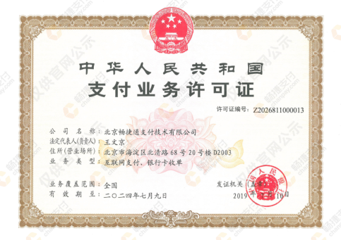 值得注意的是,畅捷通是北京畅捷通支付技术有限公司的股东,后者为持牌第三方支付公司,业务类型包括互联网支付、银行卡收单,业务覆盖全国,牌照有效期至2024年7月。