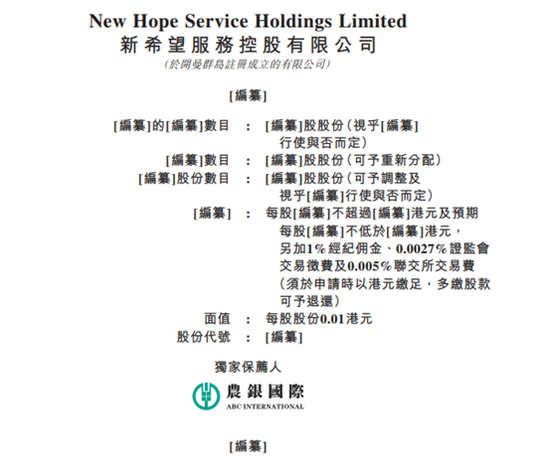 艾德证券期货讯,据港交所1月13日披露,新希望服务控股有限公司向港交所递交主板上市申请,农银国际担任其独家保荐人。