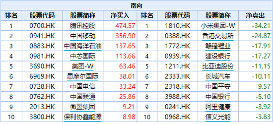 以过去一个月南向资金净买入金额计,腾讯控股、中国移动、中海油位居前三。除中国移动外,另两大通信运营商也均在买入榜中,机构评论称,国内三大运营商整体盈利能力处于全球一线运营商前列,但估值水平却处于全球偏低水平,股息率已具吸引力,或有资金抓住其估值历史底部机会。居净卖出额首位的小米集团则于今日被美方列入涉军“黑名单”,收跌超10%。