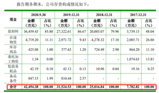 各年度存货期末账面价值占资产总额的比例分别为 10.88%、21.30%、20.30%以及 19.51%,占资产总额比例较高。