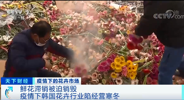 韩国农村经济研究院统计显示,韩国鲜花70%的销售额来自毕业典礼、婚礼等仪式活动,受疫情影响,不仅各类毕业典礼大部分转在网上进行,人们的婚礼、周岁宴、寿宴等仪式也纷纷取消或缩小规模。去年12月,韩国主要花卉流通市场的销售额同比锐减近三成,整个花卉市场变得十分冷清。如今,无论是鲜花经销商还是花农,面对大量滞销的鲜花,不得不忍痛销毁。