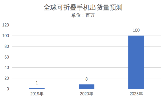 国金证券曾在去年底发布的研报中表示,随着后续更多手机厂的加入,折叠屏手机市场望进一步加速成长,出货量也将迅速攀升。StrategyAnalytics此前预测,全球可折叠智能手机的出货量将从2019年的不足100万部增长到2025年的1亿部。
