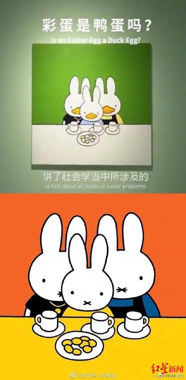 网友制作的米菲兔(上)与鸭兔形象对比。图据微博