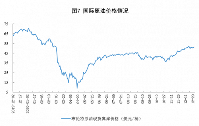 12月31日,布伦特原油现货离岸价格为51.22美元/桶,比11月30日的46.84美元/桶上涨9.4%。