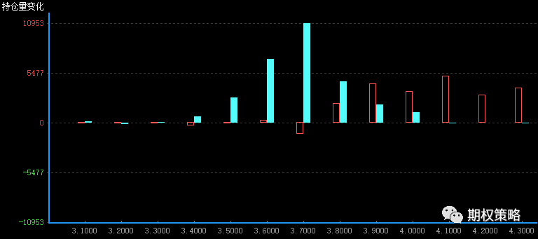 从2月持仓变化来看,认购在4100处增仓最大,认沽3700处增仓最大,50ETF压力有上移迹象。