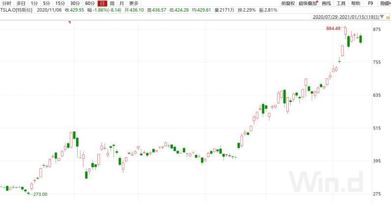 特斯拉的股价在2020年上涨了740%以上,今年迄今为止又上涨了17%。相比之下,标准普尔500指数和道琼斯工业平均指数今年以来的涨幅都不到1%。华尔街预计即将披露的财报或显示,特斯拉每股收益为1美元,这将是该公司的季度记录。