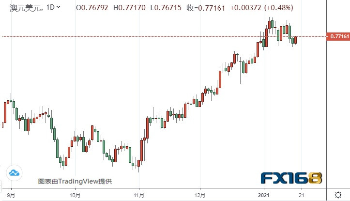 只要维持在0.76支撑上方,那么澳元/美元可能试图反弹。