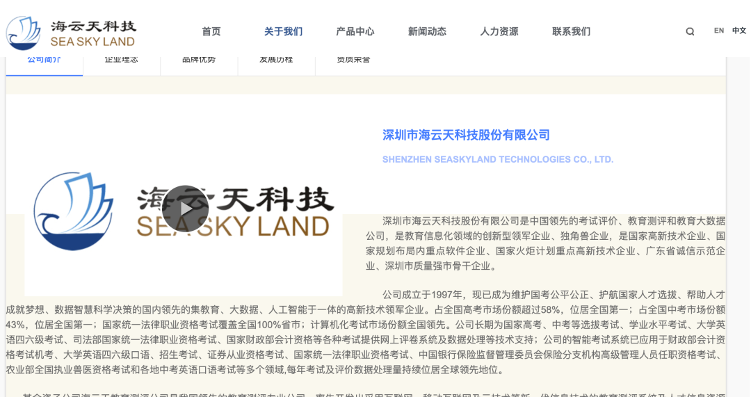 官网显示,深圳市海云天科技股份有限公司是中国领先的考试评价、教育测评和教育大数据公司。