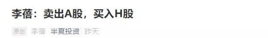 半夏投资创始人李蓓发文称,卖出A股买入H股。