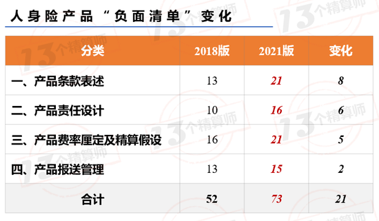 今日,银保监会下发的人身保险产品“负面清单”(2021版),相较2018版增加21项内容。