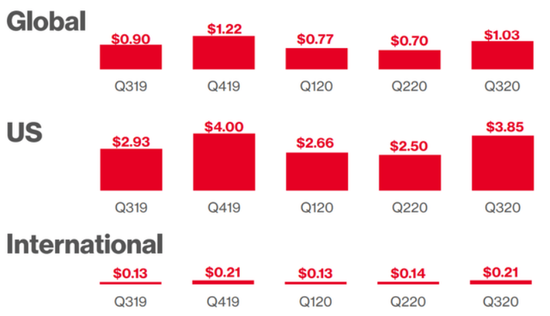 虽然Pinterest的用户群在不断增长,但其庞大的国际曝光导致其每用户平均收入(APRU)数据疲软,表明因为考虑到用户会提供疲软的销售数据,广告商不太愿意通过该平台向用户投放广告。因此,由于Facebook或Instagram用户群更多样化,在这两个平台投放广告会有更好效果。