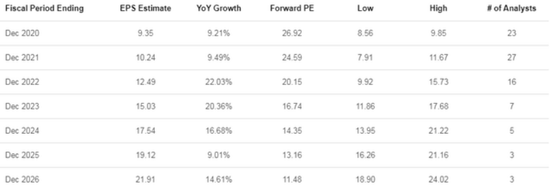 目前,该公司5年和3年EPS复合年增长率分别为54.5%和19.37%。在此前的文章中,我解释过为什么中期来看Facebook的用户增长以及APRU增长可以轻松证明这家公司能够达到18%的EPS复合年增长率。