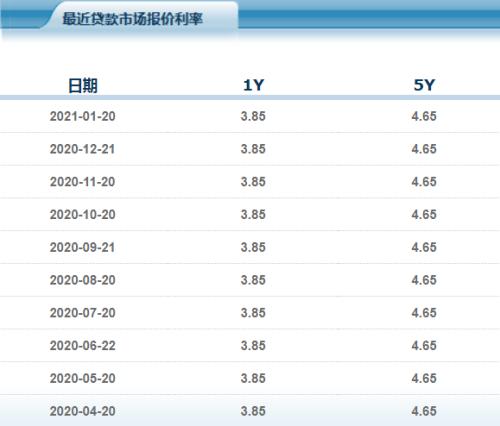 1月20日,全国银行间同业拆借中心公布贷款市场报价利率(LPR)报价:1年期LPR为3.85%,5年期以上LPR为4.65%。1年期和5年期以上LPR均与上期持平,自2020年5月以来连续9个月保持不变。