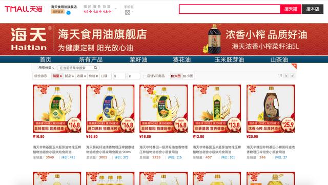 润心科技的天猫海天食用油旗舰店 (图片来源:天猫)
