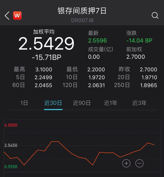 从市场利率表现情况看,得益于1月20日央行通过逆回购净投放流动性2780亿元,当天隔夜和7天期资金利率出现一定下行。其中,DR007加权平均利率下行16个基点达到2.54%附近。