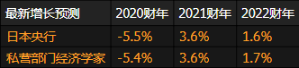 日本央行和私营部门经济学家对日本未来几年的经济预测如下