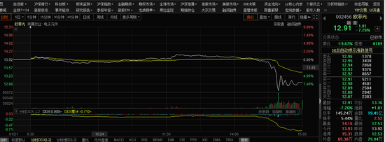 临近收盘,欧菲光突发闪崩一度跌停,随后在资金承接下延续低位震荡整理态势。截至收盘,欧菲光仍跌7.26%,成交额超19亿,换手率为5.44%。