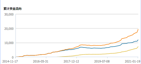 数据显示,2020年,南向资金合计净流入6721.25亿港元,其中沪市港股通净流入3340.09亿港元,深市港股通净流入3381.17亿港元。