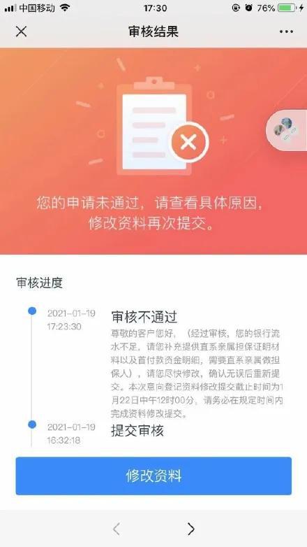 这两天,从网友们的曝光来看,不少购房者们直接在线上登记这一关就没有通过,审核不通过的理由直抵人心,有的显示流水不足打回,需要直系亲属提供担保(父母、夫妻)。