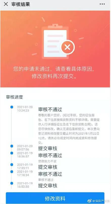 据说,还有人连续修改了三次,最后还是卡在征信的要求上:简版征信不够详细,要提供人行详细版征信和名下住房贷款合同。