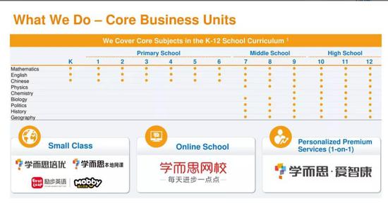 好未来的业务主要划分为三部分,一是线下小班课,这是好未来发家致富的大本营,二是学而思网校,即K12在线双师直播大班课,这是近几年来好未来排兵布阵的主要火力点,另外还有智康1对1业务。