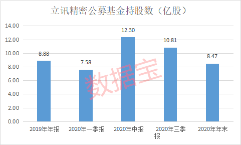 去年下半年以来,公募基金大幅减仓立讯精密,从去年半年报1683家公募持股12.3亿股,到去年末减仓至782家公募基金持股8.47亿股,减仓幅度高达31%。以立讯精密去年下半年平均股价55元计算,公募基金累计减仓金额达到210亿元。
