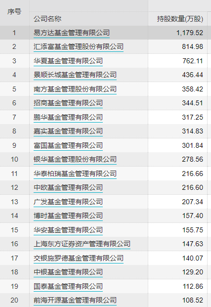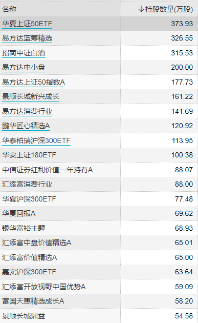 去年四季度末,共有1361只基金重仓持有贵州茅台,合计持有6261.73万股,较上一季度末增加了1399.05万股。易方达是持有茅台最多的基金公司,合计达到867万股,持股市值近200亿元。