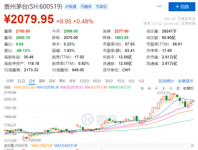 中金公司分析师余驰团队在1月4日的一份最新的研究报告中,上调贵州茅台目标价至2739元人民币。
