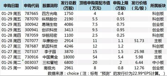 根据新股发行安排,下周(1月24日-1月29日)A股市场将迎来11只新股网上申购;H股则暂无。