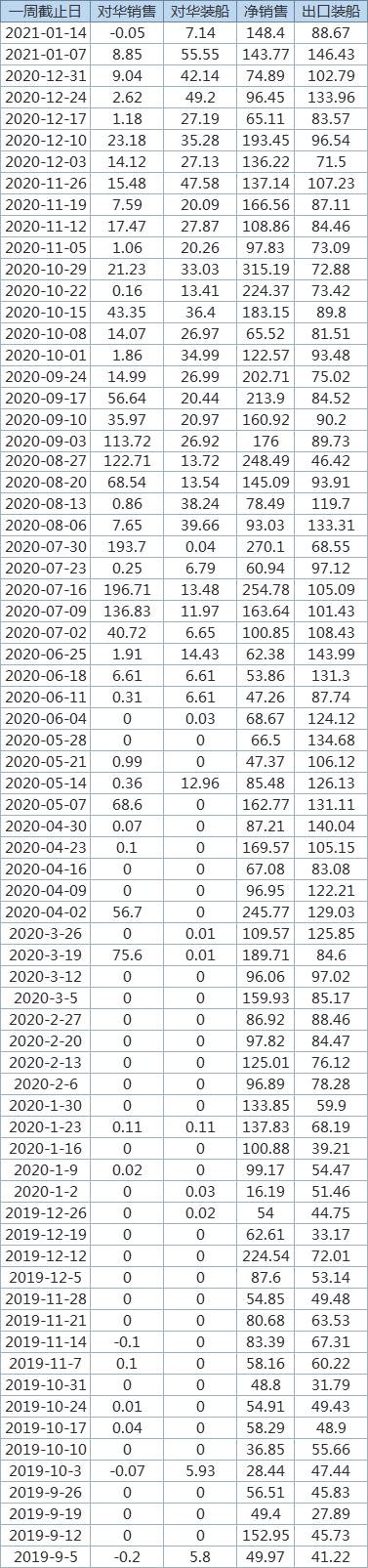 以下为2019/20年度以来美国玉米对中国出口销售情况:(单位:万吨)
