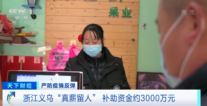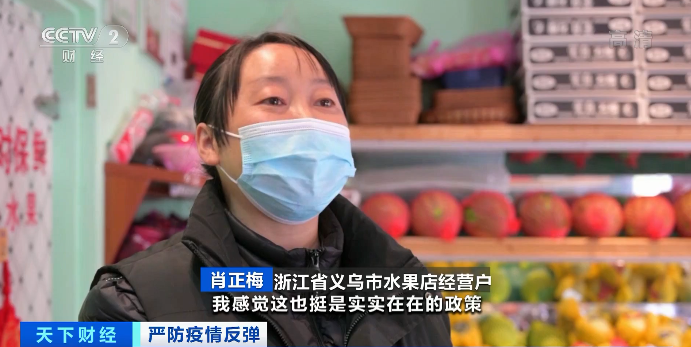 浙江省义乌市水果店经营户肖正梅:过年不回去,政府补贴2000元。我感觉这政策挺实在的,决定留在这边过年,火车票都退了。
