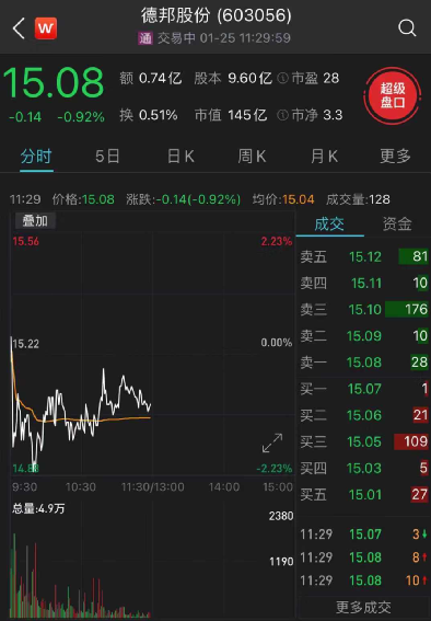 反观德邦股份却“飘绿”,截至午盘,德邦股份跌0.92%。股价为15.08元/股,最新市值为145亿元。
