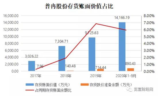 普冉股份每年根据存货的可变现净值低于成本的金额计提相应的跌价准备,2017年末、2018年末、2019年末和2020年9月末,公司存货跌价准备余额分别为7.96万元、140.48万元、714.44万元和890.43万元,占同期存货账面余额的比例分别为0.26%、1.89%、6.84%和5.91%。普冉股份存货计提的跌价准备金额占存货账面余额的比例逐年提升。