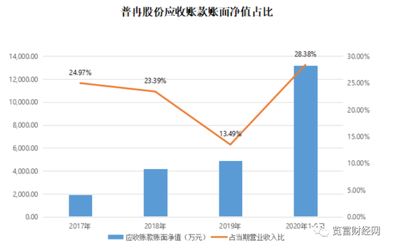 2017年末、2018年末、2019年末和2020年9月末,公司应收账款账面净值分别为1,942.93万元、4,168.73万元、4,895.81万元和13,161.57万元,占当期营业收入的比例分别为24.97%、23.39%、13.49%和28.38%。