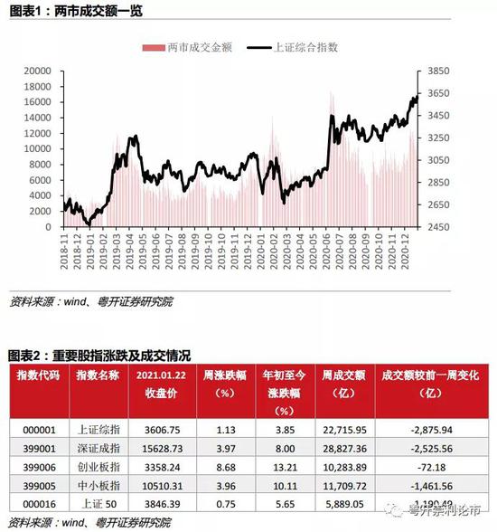 上周(1月18日-1月22日)两市成交金额合计5.15万亿元,其中上证成交2.27万亿元,深证成交2.88万亿元,日均成交额较前一周减少0.11万亿。上周市场震荡上行,沪指周上涨1.13%,两市成交量下降,但日均成交额仍在万亿级。