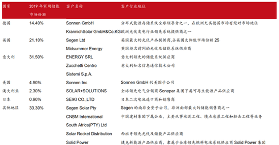 目前,在家用储能业务中,派能科技产品主要出口海外市场。其在下游先后绑定了欧洲最大储能系统集成商 Sonnen、英国最大光伏提供商 Segen等大型优质客户,形成了全球范围多地区的家用储能市场布局。而在通信备电业务领域,中兴康讯占有了公司96%的下游市场。中兴作为持有公司 37.21%股份的控股股东,在中国移动、中国电信及中国联通的5G集采市场中均获得约为30%的份额。