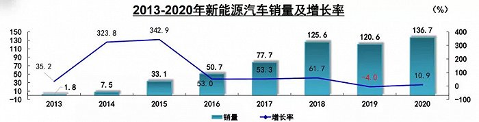 新能源汽车在国内发展速度很快,尤其是从2020年下半年开始加速,从7月开始,每个月产销均刷新当月历史记录,12月创下月度历史新高,同比增速达49.5%,全年增速10.9%。