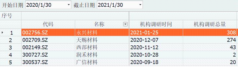 Choice数据显示,1月永兴材料接受了308家机构的调研,其中就包括星石投资、敦和资产、趣时资产、彤源投资、聚鸣投资等多家百亿级私募,以及易方达基金、广发基金、朱雀基金等权益投资能力较强的公募公司。