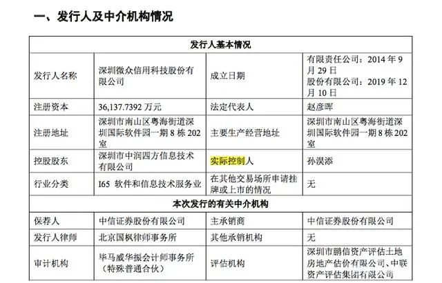 据微众信科招股书披露,孙淏添通过中润四方控制公司32.04%的表决权,通过税银一号控制公司7.73%的表决权,通过共青城国骏控制公司1.82%的表决权,合计控制公司41.59%的表决权,系该公司的实际控制人。