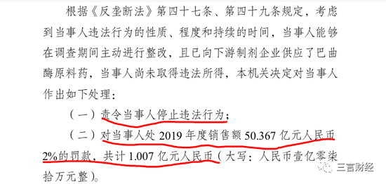 (二)对当事人处2019年度销售额50.367亿元人民币2%的罚款,共计1.007亿元人民币(大写:人民币壹亿零柒拾万元整)。