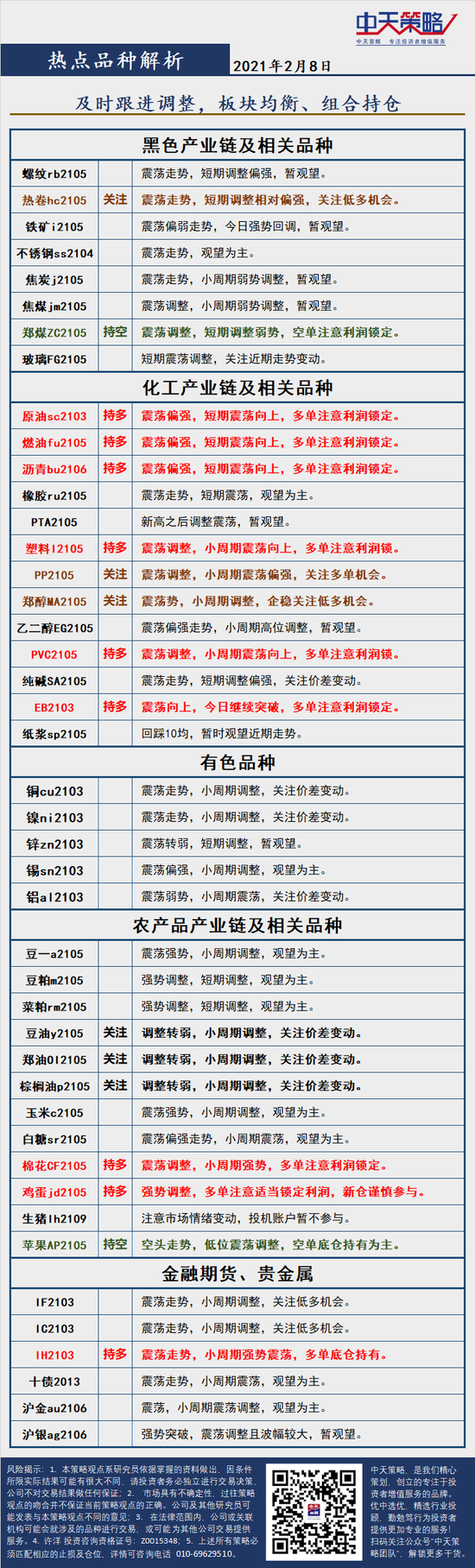 中天策略2月8日市场分析:有色化工接力反弹 相关品种强势新高