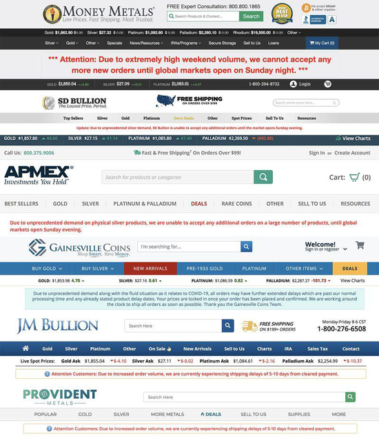 不仅白银期货价格暴涨,而且白银实物同时陷入脱销状态。面对10倍以上的需求量,周末全美各大贵金属交易商纷纷爆出白银断货的新闻,实物银币与白银期货的价差更是高达14美元(实物比纸白银价格高出43%),创下历史纪录。