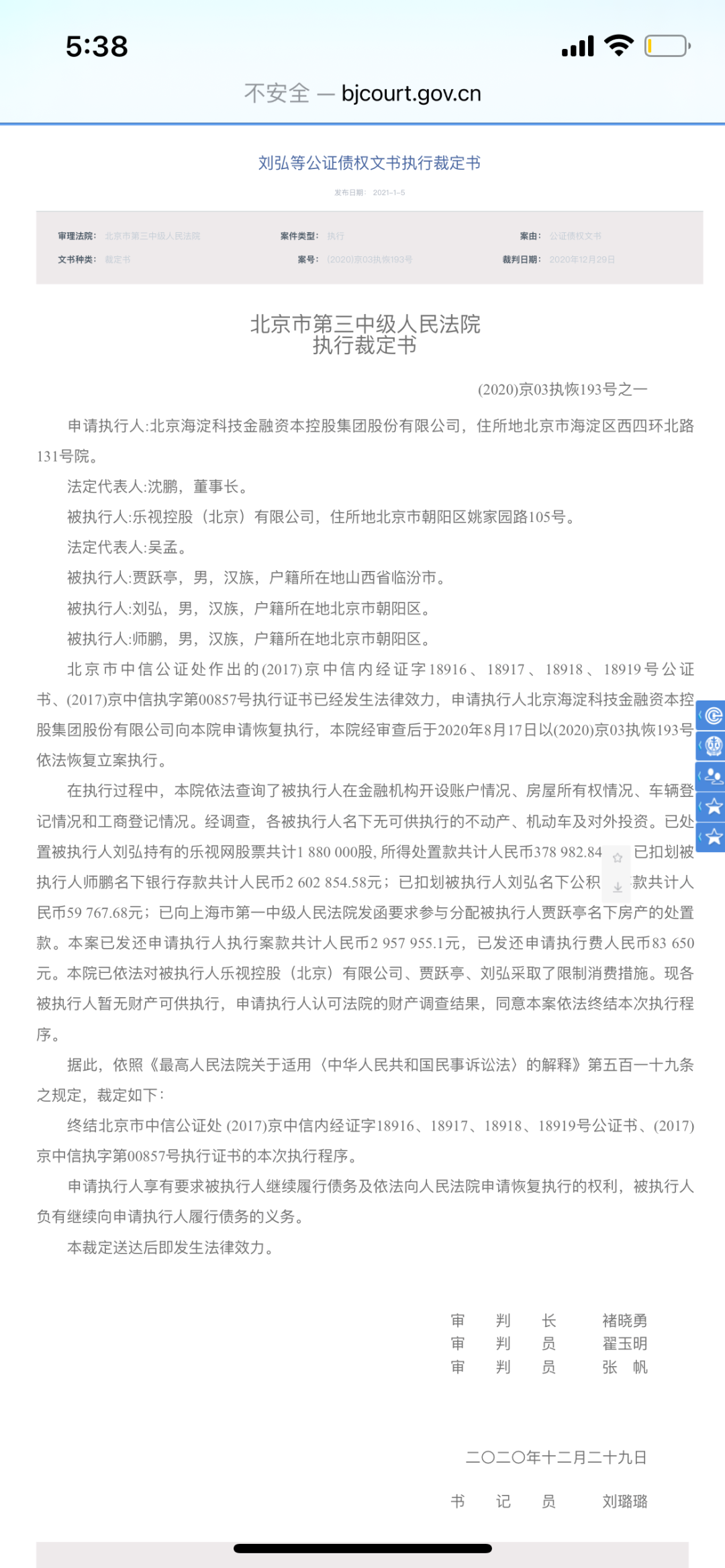 稍微了解一点贾跃亭和乐视前生今世纠葛的看客,看到这个消息或许难以置信。毕竟,昔日风光无限的贾总早已是个在美国宣布破产的中国“老赖”。甚至就在四年前,仅仅是因欠下平安证券包括利息与服务费在内约4.8亿元(这只是其庞大债务包中的冰山一角),他就被上海法院冻结了名下12.37亿元资产及大部分股权。