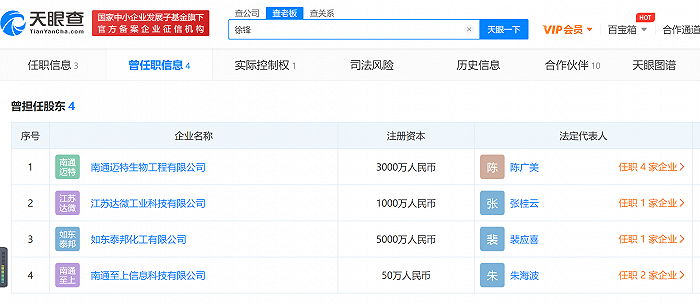 另外,如东泰邦的前股东、负责人徐锋,也曾是南通迈特生物的原股东。