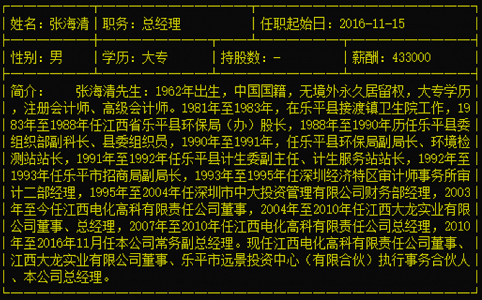 张海清系世龙实业的总经理,大龙实业和电化高科的董事,同时也是世龙供应链的法定代表人及执行董事。