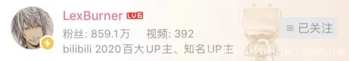 LexBurner是B站百大UP主之一,以动画解说、点评、吐槽,新番导视见长,该账号在b站注册也就不到5年,但由于多次“出圈”,粉丝数一度高达900多万,平均每个视频(动画类)播放量都是200万以上。